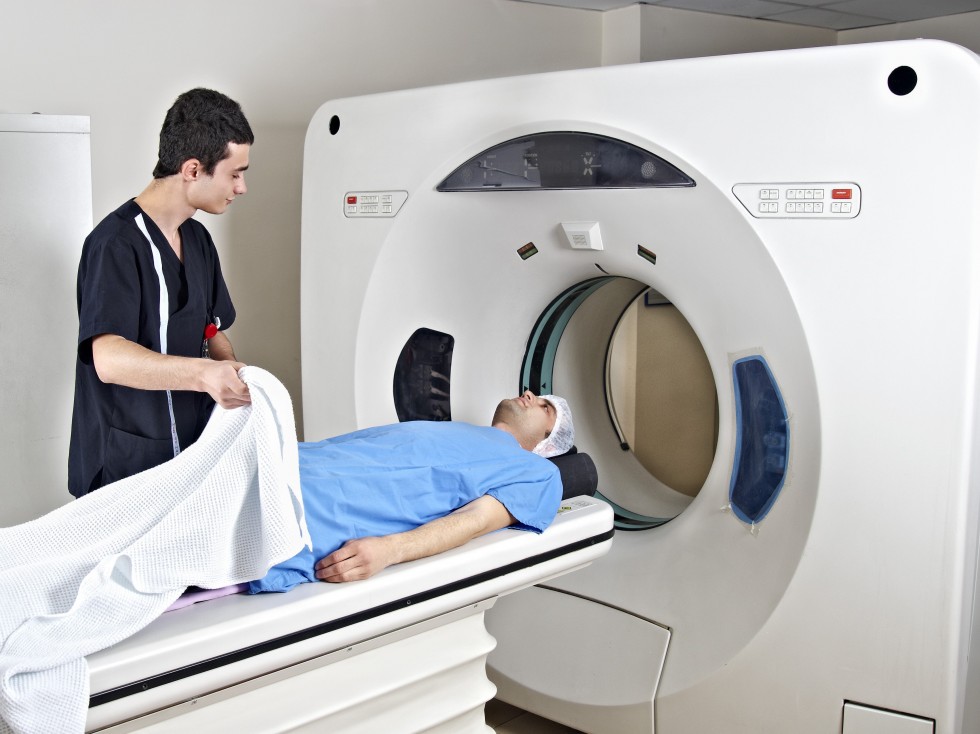 During the scan you will lie on a moving table. A rotating device spins around your body creating a beam of X-rays. A detector takes snapshots of the beam after it passes through your body and a powerful computer program then processes the images and displays them in different ways for examination. The technician will communicate with you throughout the procedure, but will need to leave the room briefly to run the computer. A radiologist then reviews the images to look at the area in question.